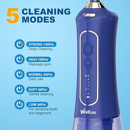 Sản phẩm WellLeo Water Flossers for Teeth, 300ML Cordless Oral Irrigator Rechargeable Dental Flosser Picks with 5 Modes 5 Jet Tips,IPX7 Waterproof Teeth Cleaner for Braces Gum Care, Home Travel Use đang được bán với giá ưu đãi là $23.6312 tại nước Mỹ.