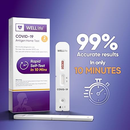WELLlife Covid-19 Antigen Home Test, FDA Authorized OTC Covid Home Test with 10 Minute Results, 1 Pack, 5 Tests Total, Easy to use & No Discomfort