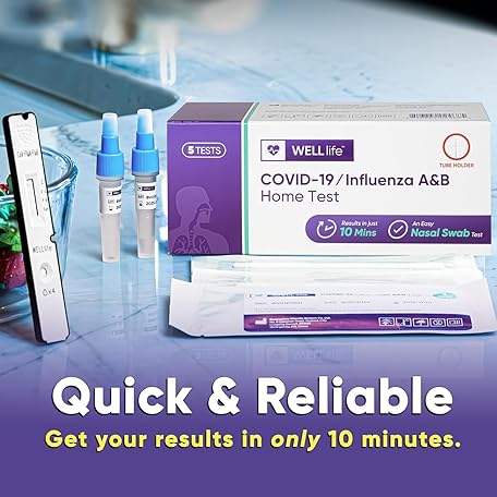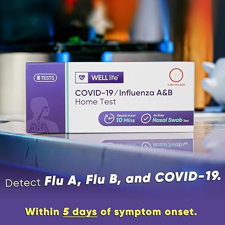 WELLlife COVID-19/Flu A&B Home Test, Results in 10 mins for Flu and Covid, FDA Authorized Rapid Antigen Flu & COVID Home Test with Non-invasive Nasal Swab, (1 Pack, 5 Tests Total)