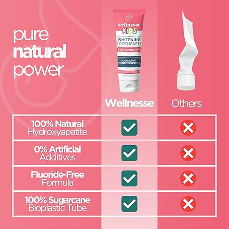 Thông tin sản phẩm Wellnesse Kids Hydroxyapatite Toothpaste with Xylitol - Fluoride Free Toddler & Kid's Natural Toothpaste, Freshens Breath, Sensory-Friendly Oral Care, Vegan, Strawberry Flavor, 4 oz (Pack of 1)