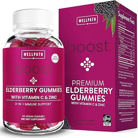 Sản phẩm WellPath Boost Elderberry Gummies with Zinc & Vitamin C | Immune Support Supplement for Adults | Immunity Booster Vitamins | Sambucol Black Gummy | Non-GMO & Vegan, 60 Ct đang được bán với giá ưu đãi là $10.8019 tại nước Mỹ.