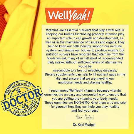 Thông tin sản phẩm WellYeah Vitamin C 1050 mg Gummies - Natural Sourced Flavors - Immune Support Dietary Supplement, Antioxidant Support - Extra Strength Vegetarian Gummy, Non-GMO, Gluten Free - 30 Servings