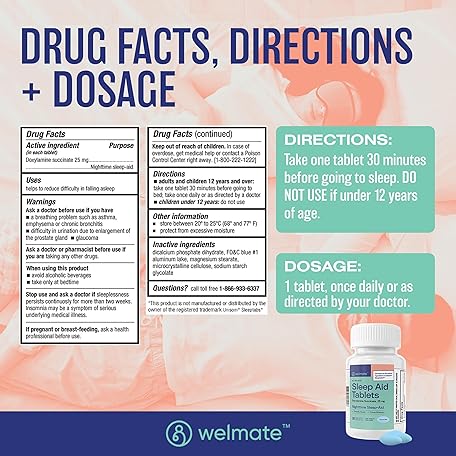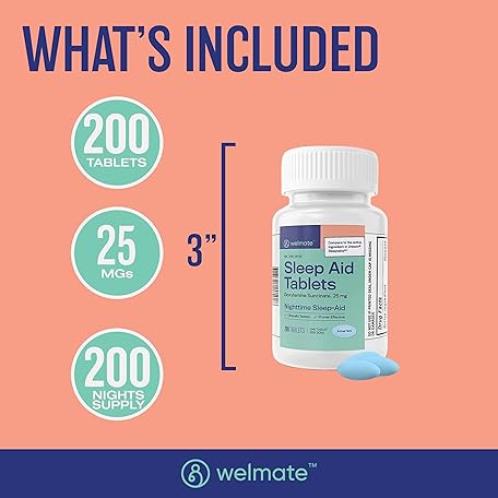 Sản phẩm WELMATE - Nighttime Sleep Aid - Doxylamine Succinate 25 mg - for Adults & Children 12+ - 200 Tablets đang được bán với giá ưu đãi là $16.2955 tại nước Mỹ.