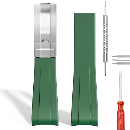 Wentokye 20mm Watch Band for Rolex Rubber Strap 20mm for Men & Women Watches-Replacement Curved Lug End Watch Strap Colors:Black, Blue,Green 20mm 21mm