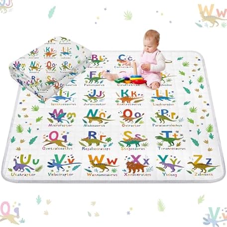 Wesiti Dinosaur Alpha Portable Baby Play Mat 50 x 50 Washable Foldable Crawling Mat Non Slip Cushioned Kids Play Mats Pad for Floor Playpen Toddler Infants Tummy Time Activity