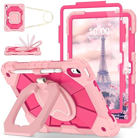 WESOROL Case for iPad (A16) 11th Generation 11 Inch (2025) iPad 10th Generation 10.9 Inch (2022),Full-Body Drop Protection i Pad Case 10th Gen with Rotating Stand Screen Protector Pencil Holder,Rose