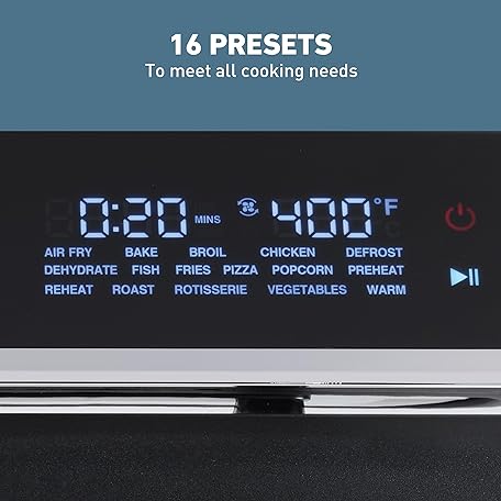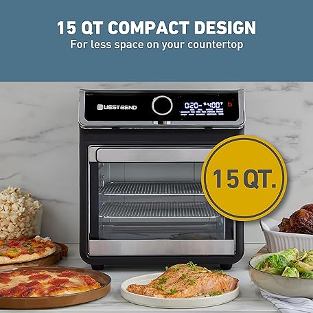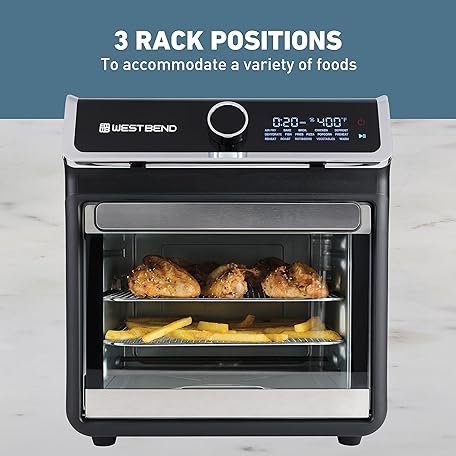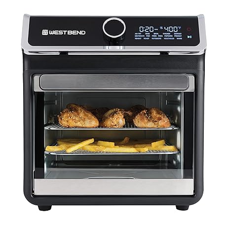 Thông tin sản phẩm West Bend Air Fryer Oven 15-Quart Capacity with Digital Controls Easy-View Door and 16 Cooking Presets, Includes Eight Cooking Accessories, 1000-Watts, Black
