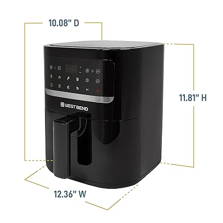 Thông tin sản phẩm West Bend Compact Air Fryer 5-Quart Capacity with Digital Controls LCD Display and 10 Cooking Presets with Shake Reminder, Nonstick Frying Basket, 1500-Watts, Black