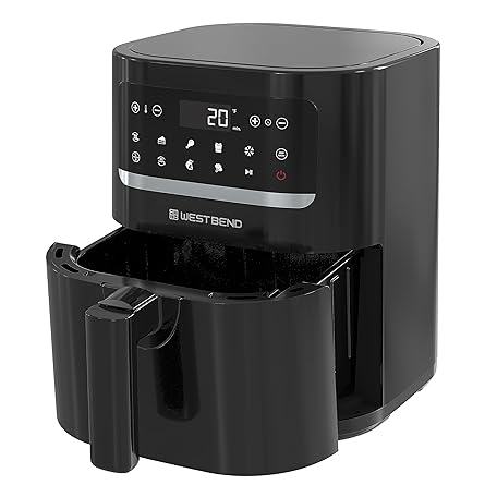 Sản phẩm West Bend Compact Air Fryer 5-Quart Capacity with Digital Controls LCD Display and 10 Cooking Presets with Shake Reminder, Nonstick Frying Basket, 1500-Watts, Black đang được bán với giá ưu đãi là $73.5096 tại nước Mỹ.