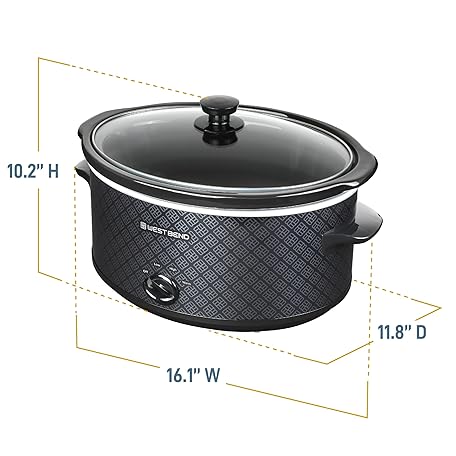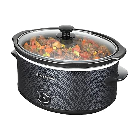 Thông tin sản phẩm West Bend Slow Cooker 6-Quart Manual Crockery Style with Dishwasher Safe Oval Ceramic Crockpot and Glass Lid Two Temperature Settings Plus Keep Warm, 330-Watts, Black