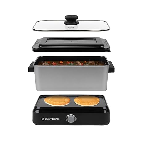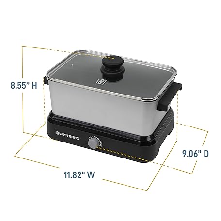 Thông tin sản phẩm West Bend Versatility Slow Cooker Large Capacity Non-stick Cooking Vessel & Variable Temperature Heating Base Includes Travel Lid and Storage Bag, Range and Oven-Safe Cooking Pot, 5-Quart, Silver