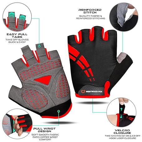Thông tin sản phẩm WESTWOOD FOX Cycling Gloves for Men Women,Half Finger Unisex Gel Padded Anti-Slip Mountain Bike Gloves, Breathable Shock Absorption Grip Palm Bicycle Summer Riding MTB Bike Gloves