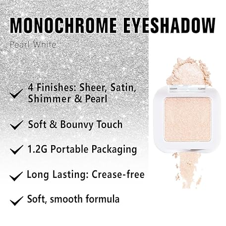 White Pearl Glitter Single Eyeshadow Palette - Single Shimmer Eye Shadow in Pearl White, Natural Highly Pigmented, Blendable Monochrome Powder Eye Shadow, Eyeshadow Palette Gift for Girls Women