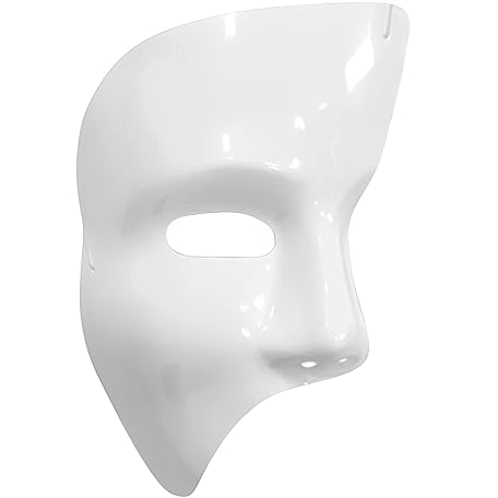 Thông tin sản phẩm White Phantom Plastic Mask Costume Accessory - 1 Count - Durable, Mystery & Elegant - Ideal Halloween & Masquerade Party Wear, One Size Fit Most