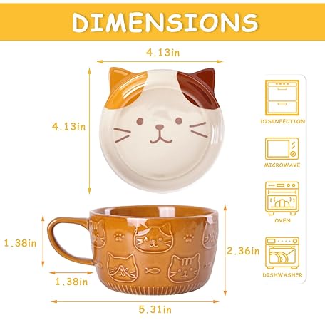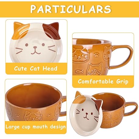 Thông tin sản phẩm WHJY Ceramic Cute Cat Mugs with Lid, Kawaii Cat Coffee Mug With Lid, Japanese novelty gifts for Cat Lover - 10 oz