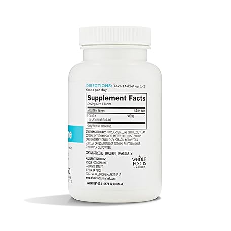Thông tin sản phẩm Whole Foods Market, Free-Form L-Carnitine 500mg, Vegan, 60 Count