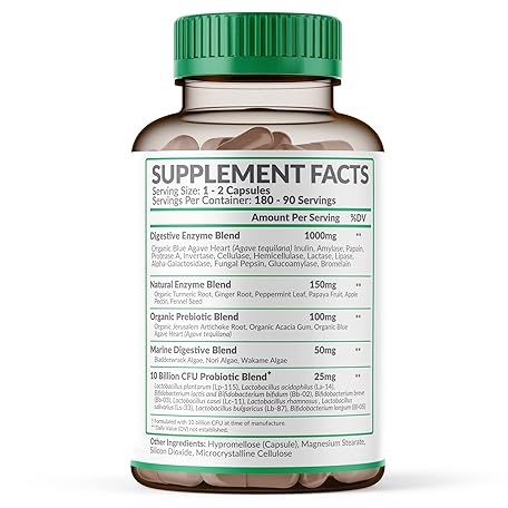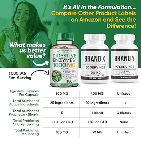 Thông tin sản phẩm Wholesome Wellness Digestive Enzymes 1000MG Plus Prebiotics & Probiotics Supplement, 180 Capsules, Organic Plant-Based Vegan Formula for Digestion & Lactose with Amylase & Bromelain,3-6 Months Supply