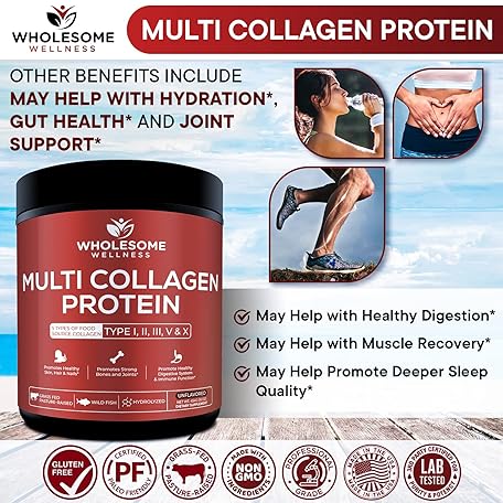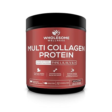 Sản phẩm Wholesome Wellness Multi Collagen Protein Powder Hydrolyzed (Type I II III V X) Grass-Fed All-in-One Super Bone Broth + Peptides - Premium Blend of Beef, Chicken, Wild Fish, Eggshell, 58 Servings đang được bán với giá ưu đãi là $32.6891 tại nước Mỹ.