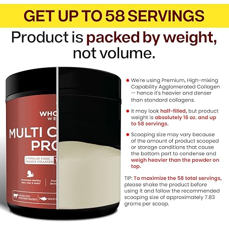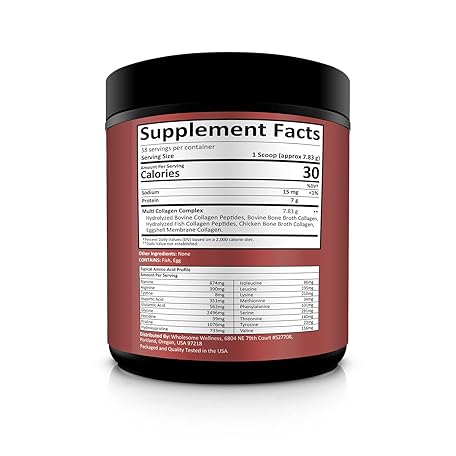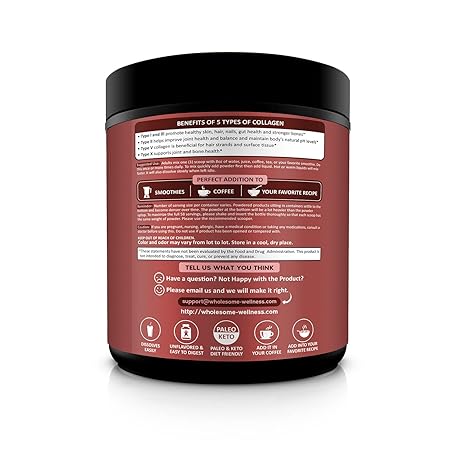 Thông tin sản phẩm Wholesome Wellness Multi Collagen Protein Powder Hydrolyzed (Type I II III V X) Grass-Fed All-in-One Super Bone Broth + Peptides - Premium Blend of Beef, Chicken, Wild Fish, Eggshell, 58 Servings