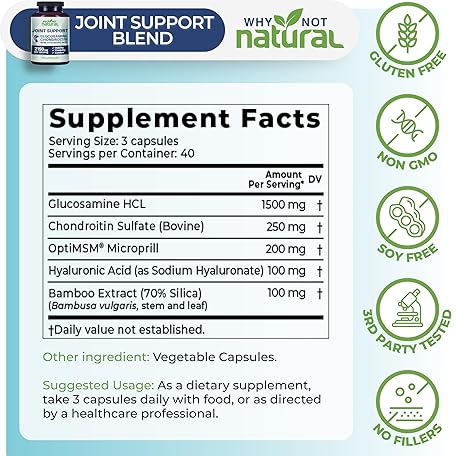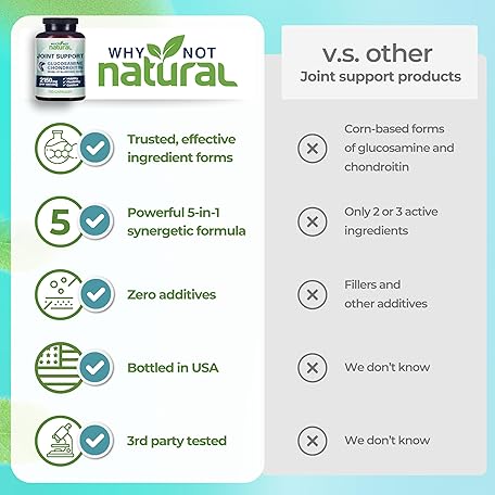 Sản phẩm Why Not Natural Glucosamine Chondroitin, MSM, Joint Support Supplements - Knee Pain Joints Health Suppplement đang được bán với giá ưu đãi là $25.0373 tại nước Mỹ.