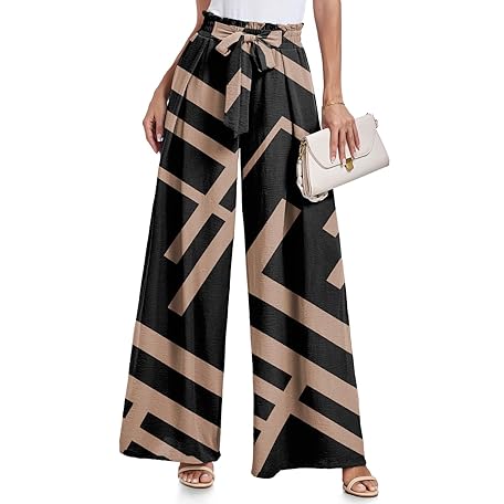 Wide Leg Pants for Women High Waisted Palazzo Pants Work Casual Flowy Tie Knot Trousers with Pockets