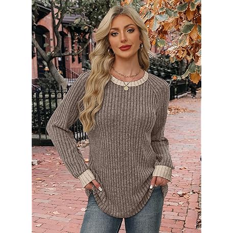 • WIHOLL Long Sleeve Shirts for Women Lightweight Sweaters Fall Outfits 2025 Color Block Winter Clothing Dressy Casual Soft