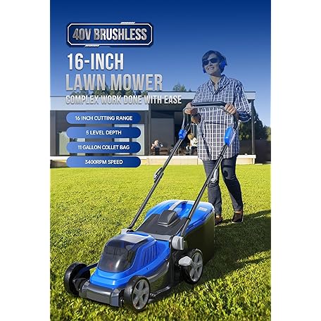 Thông tin sản phẩm Wild Badger Power 40V 16″ Cordless Lawn Mower Brushless, 1,900 sq ft/0.044 ac,1×4.0Ah Battery & Fast Charger, 5-Position Height,for Small Residential Lawns
