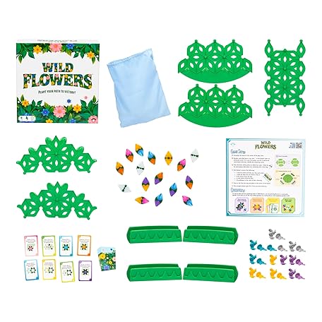 Wild Flowers Family Fun Strategy Game, Grow & Claim Flowers by Placing Tiles & Bumble Bees to Secure Your Blooms Before Others, Complete Garden Cards to Score Big! Solo Play & 1 to 4 Players Aged 8+