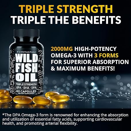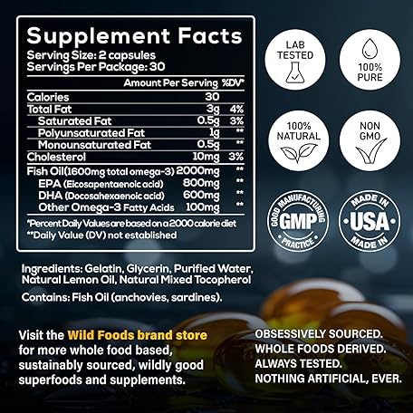 Thông tin sản phẩm Wild Foods Fish Oil Omega 3 Supplements | 1600 mg | Highly-Potent: DPA, DHA, EPA | Burpless, Odorless, Non-GMO, Gluten Free | For Brain & Heart Health, Joint Support | 60 Capsules (1 pk) | 30 Servings