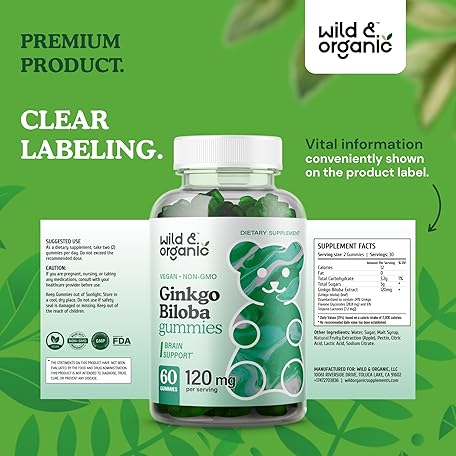 Sản phẩm Wild & Organic Gingko Biloba 120mg Gummies - Brain Support and Focus Supplement w/Ginkgo Biloba Extract - Vegan, Non-GMO - 60 Pectin-Based Herbal Chewables đang được bán với giá ưu đãi là $24.6231 tại nước Mỹ.