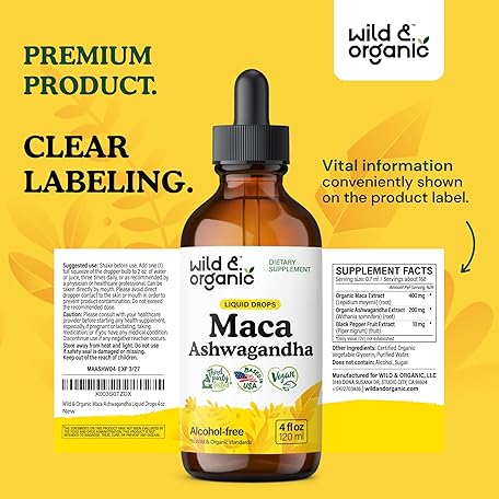 Thông tin sản phẩm Wild & Organic Maca Root Ashwagandha Drops for Men and Women - Liquid Maca Ashwagandha Supplement for Overall Support - Peruvian Extract Tincture - Vegan, Sugar & Alcohol-Free - 4 fl oz