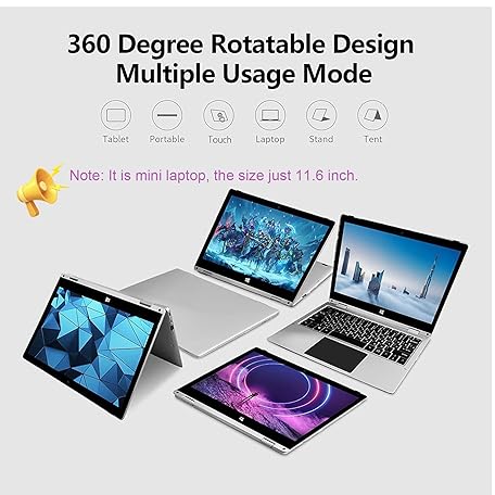 Thông tin sản phẩm Windows Laptop, 2 in 1 with Touchscreen,11.6 inch FHD Windows 11 Laptops Computer,4GB RAM,256GB SSD Storage,360 Degree Convertible Tablet Intel Celeron J4125 Processor,Webcam,WiFi,Type-C,Silver