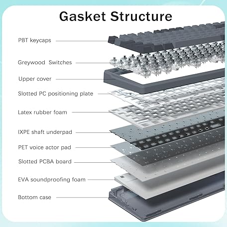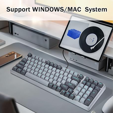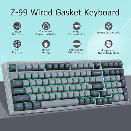 Wired Mechanical Gaming Keyboard, Creamy Sound, Pre-lubed Linear Switches, Gasket Structure with Sound Dampening Foam, Green LED Backlit RGB Side Light, 99 Keys Custom Keyboard for PC,Gray/Black