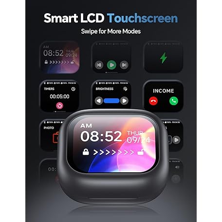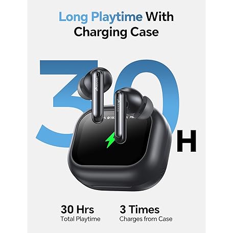 Wireless Bluetooth Earbuds: White Elephant Gifts Stocking Stuffers for Adults/Teens/Men, 13mm Drivers Hi-Fi Deep Bass, 30H Playtime, Touchscreen Control, Mic for Calls, IPX5 Water-Resistant, Black