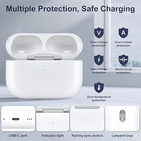 Thông tin sản phẩm Wireless Charging Case Compatible with AirPods Pro 2nd & 1st, USB-C Port, Charger Case Replacement for AirPods Pro, with Bluetooth Pairing Sync Button, Earphones Not Included