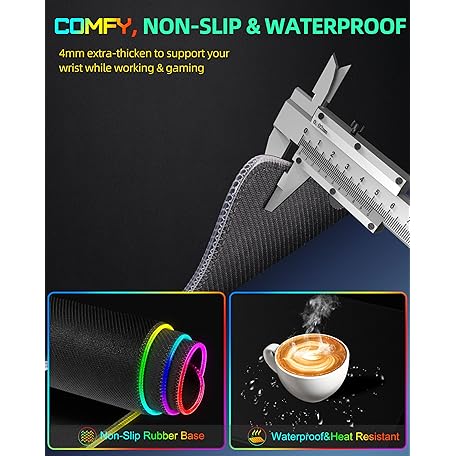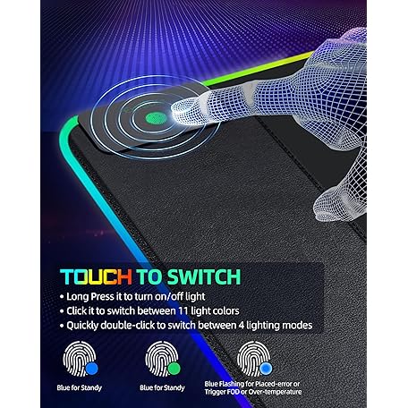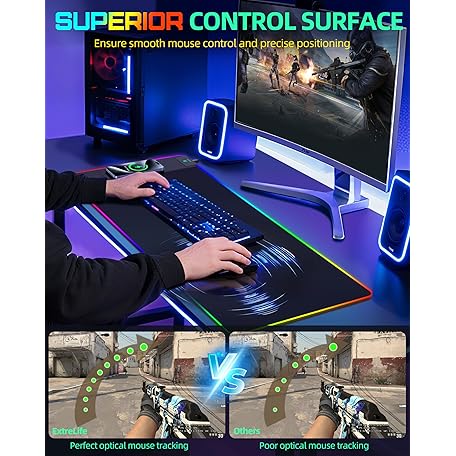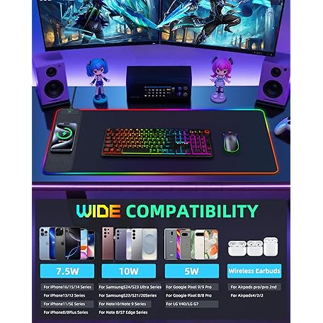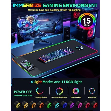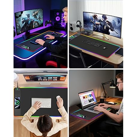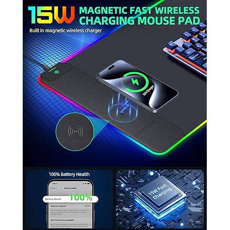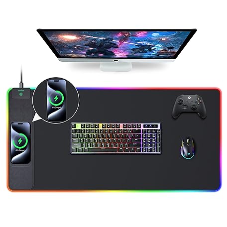 Wireless Charging Mouse Pad, RGB Gaming Desk Mat, 31.5"x15.7" Large XXL Desk Pad, 15 Lighting Modes, Ultra-Smooth Surface, Non-Slip Mouse Mat, Waterproof Computer Keyboard Pad for Desk, Office, Black