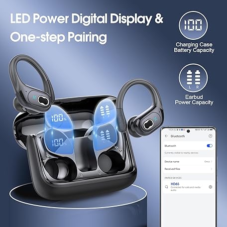 Thông tin sản phẩm Wireless Earbuds 75hrs Bluetooth 5.4 Headphone Sport, 2025 Bluetooth Earbuds Stereo Deep Bass Over Ear Bud with Earhooks, ENC Noise Cancelling Mic, IPX7 Waterproof Earphone for Workout/Running