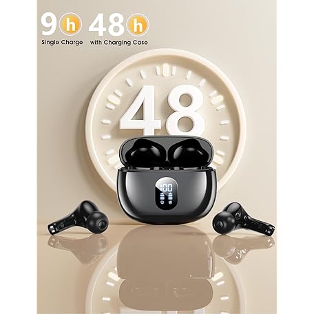 Thông tin sản phẩm Wireless Earbuds Bluetooth 5.3 Ear Buds, Hi-Fi Stereo Bass Ear Buds with 48H Playtime & LED Display, Lightweight in-Ear Headphones with Mic, IPX7 Waterproof, Touch Control for iPhone