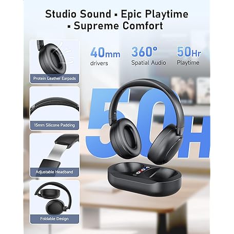 Thông tin sản phẩm Wireless Headphones for TV Watching - Manual-Select Screen Transmitter & LED Charging Dock, Zero Latency, 100ft - 2.4G & Bluetooth Headset for Samsung/LG/Sony TVs, Seniors, Hard of Hearing