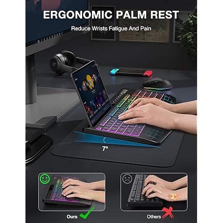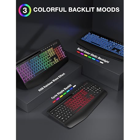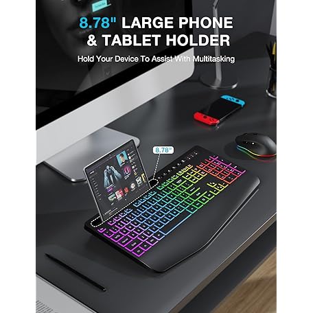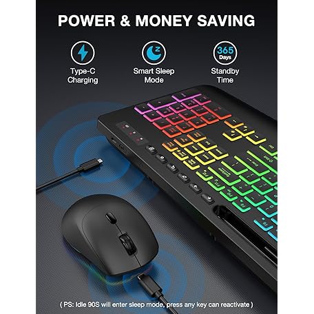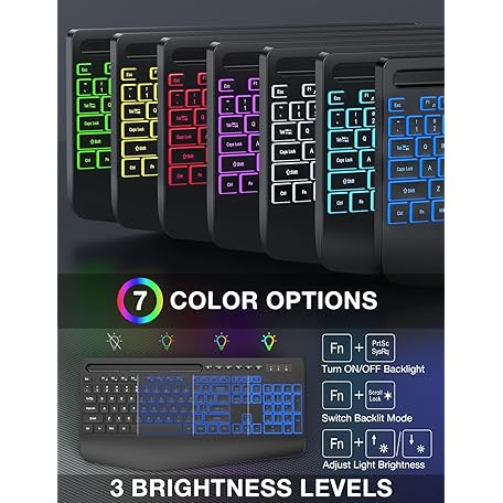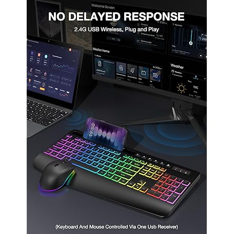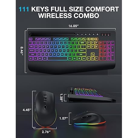Thông tin sản phẩm Wireless Keyboard and Mouse Combo - 9 Backlit Effects, RGB, Ergonomic Wrist Rest, Phone Holder, 2.4G Full Size, Rechargeable, Sleep Mode, Quiet Keyboard Set for Computer, PC, Laptop, Mac, Windows