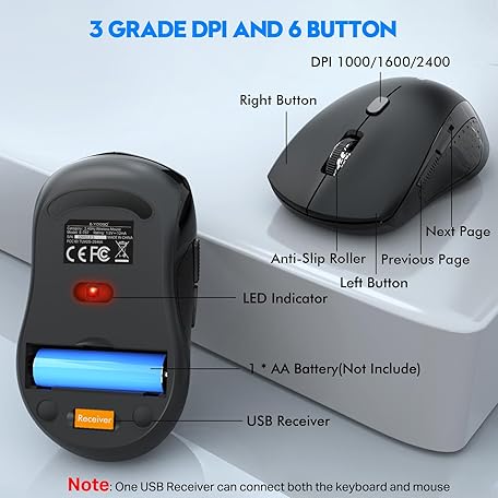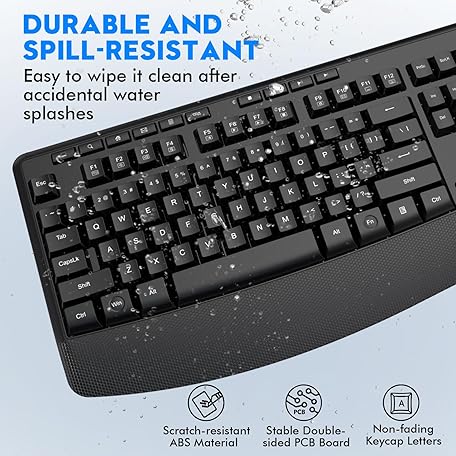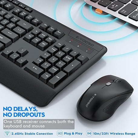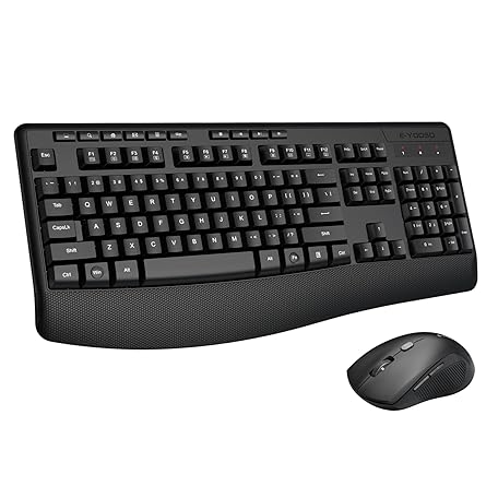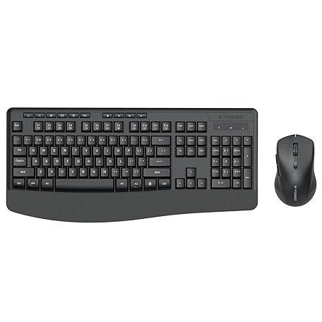Thông tin sản phẩm Wireless Keyboard and Mouse Combo, E-YOOSO 2.4GHz Full Sized Ergonomic Wireless Keyboard with Wrist Rest, 3 DPI Adjustable and 6 Buttons Cordless USB Mouse for Computer, Laptop, PC, Windows (Black)