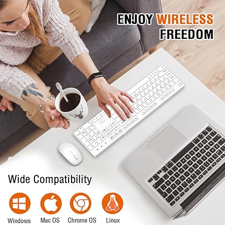 Wireless Keyboard and Mouse Combo, EDJO Silent Full Size Cordless USB Keyboard Mouse, 2.4GHz Lag-Free, Long Battery Life, for Computer, Laptop, PC, Chromebook, Windows (White, 1 Pack)