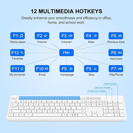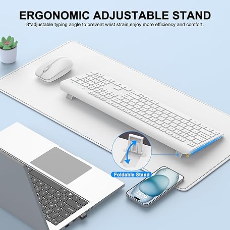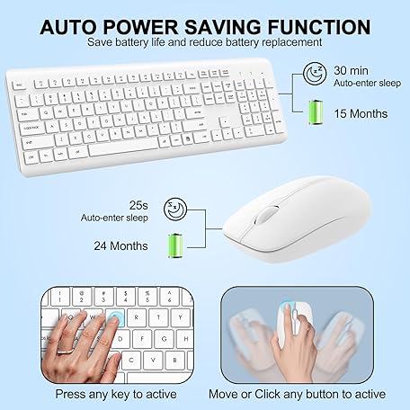 Thông tin sản phẩm Wireless Keyboard and Mouse Combo, Full Size Silent Ergonomic Keyboard and Mouse, Long Battery Life, Optical Mouse, 2.4G Lag-Free Cordless Mice Keyboard for Computer, Mac, Laptop, PC, Windows(White)
