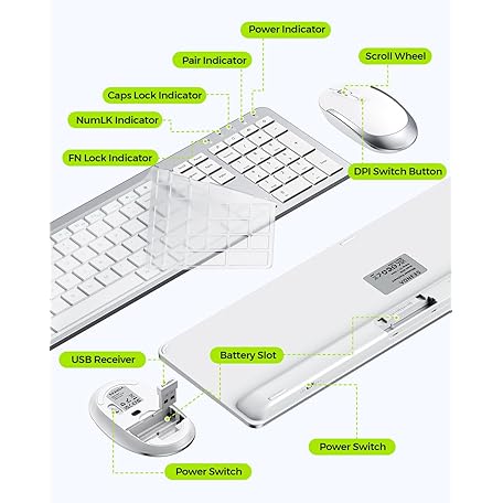 Sản phẩm Wireless Keyboard and Mouse Combo - Full Size Slim Thin Wireless Keyboard Mouse with Numeric Keypad 2.4G Stable Connection Adjustable DPI (White & Silver) đang được bán với giá ưu đãi là $29.6044 tại nước Mỹ.