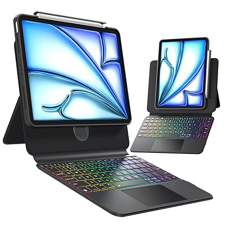 Wireless Keyboard Case for iPad Air 13-inch (M3/M2, 2025/2024), iPad Pro 12.9-inch (6/5/4/3 Generation), 360° Rotating Transparent Case, 7-Color Backlight, Multi-Touch Trackpad, Black