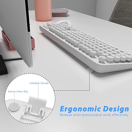 Thông tin sản phẩm Wireless Keyboard Mouse Combo, 104 Keys Cute White Keyboard with Number Pad & Mouse for Windows, Computer, PC, Notebook, Laptop (White)