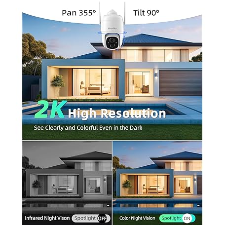 Thông tin sản phẩm Wireless Solar Security Camera Outdoor, Home Security Cameras with Solar Panel 360° Live View, 2K Color Night Vision, AI Motion Detection, IP66 Weatherproof, Local/Cloud Storage (2 Packs)