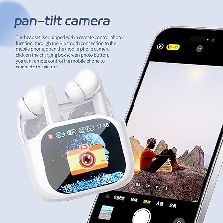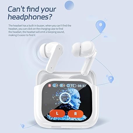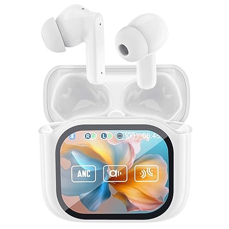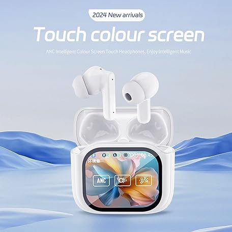 Wireless Touchscreen Earbuds with Smart Touch Screen Case - TWS True Wireless Bluetooth 5.4 Headphones - ANC Active Noise Cancelling - Blue Tooth Earphones for iPhone Android