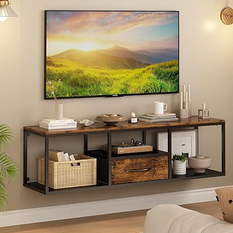 Wisdom Star Floating Wall TV Stand, Wall Mounted TV Stand with Storage Cabinet, Wall Mounted TV Cabinet Entertainment Television Center for TV up to 50 inch, for Living Room, Bedroom, Metal, Black