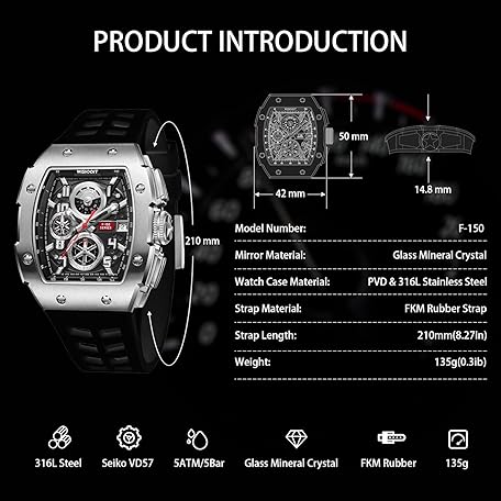 Sản phẩm WISHDOIT Chronograph Multifunction Watch Men Luxury Tonneau Watch Calendar Date Luminous Waterproof Men Watch đang được bán với giá ưu đãi là $206.01 tại nước Mỹ.